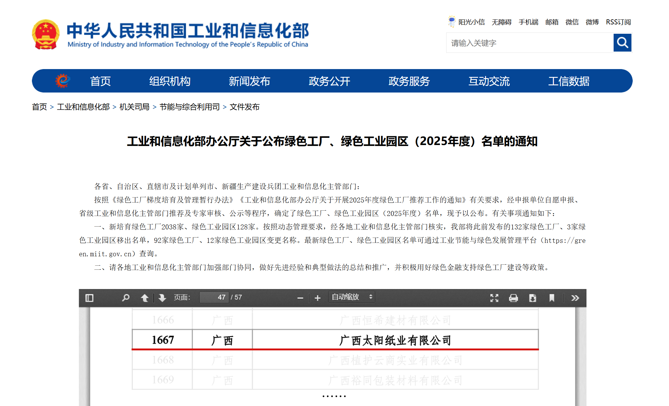 喜报!广西亿万28官网有限公司获评国家级绿色工厂